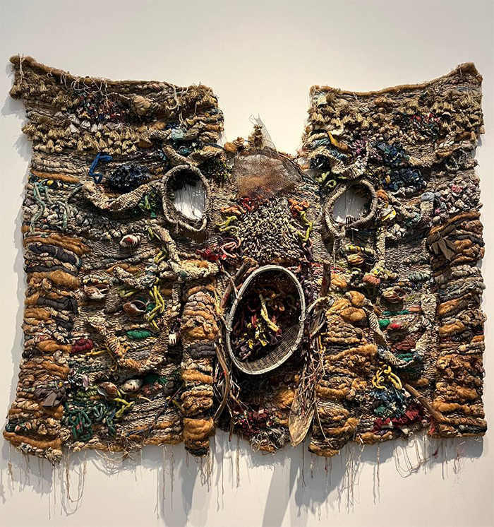 This piece, in the very fabric of its being, has a story woven into its threads — a story that perhaps we don’t fully know, whose secrets are hidden. When I got closer, I noticed how tiny words were written across the fabric. Isn’t that fascinating? Like our subconscious mind, we may not even know its secrets ourselves, but when we look inward and explore, we become aware and discover things about ourselves. I had been having strange dreams for a while — about Rome, about a warrior woman in Rome fighting for her city with all her heart. Later, I realized that perhaps it was part of a past life. What story was hidden in it? How does it connect to my current life? Did understanding it help me? The answer is yes. I realized I have knots in this life that stem from the past, and I tried to resolve them. Because I resolved them, I am here now. Before this, interestingly, my plans to come to Spain wouldn’t work — something always blocked them. But after I resolved and reconciled with myself and that part of me, I was able to enter a new chapter of my life. And the most important principle for the future of humanity is awareness: awareness of our inner self, awareness of ourselves, and awareness of the world.