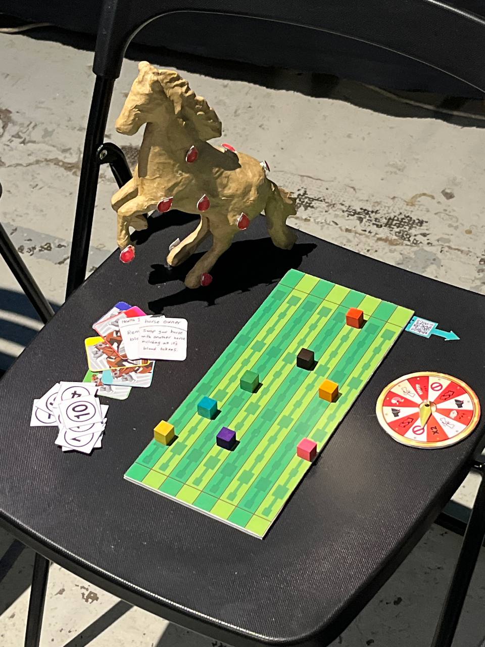 This project is a game-based art artifact designed as an act of protest and awareness against horse race betting and the hidden violence embedded in it. Instead of presenting betting as entertainment, the game exposes how every act of winning, prediction, and profit is directly tied to physical harm inflicted on a living body. The game uses the familiar language of board games—numbers, tokens, movement, and chance—to invite players in. However, as the game progresses, it becomes increasingly uncomfortable. What initially feels like strategy and luck slowly reveals itself as collective responsibility for suffering.